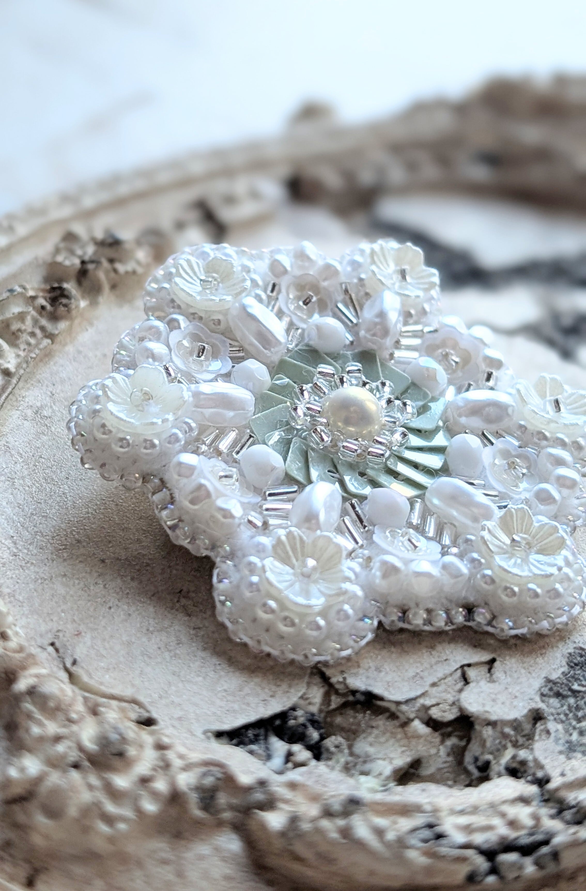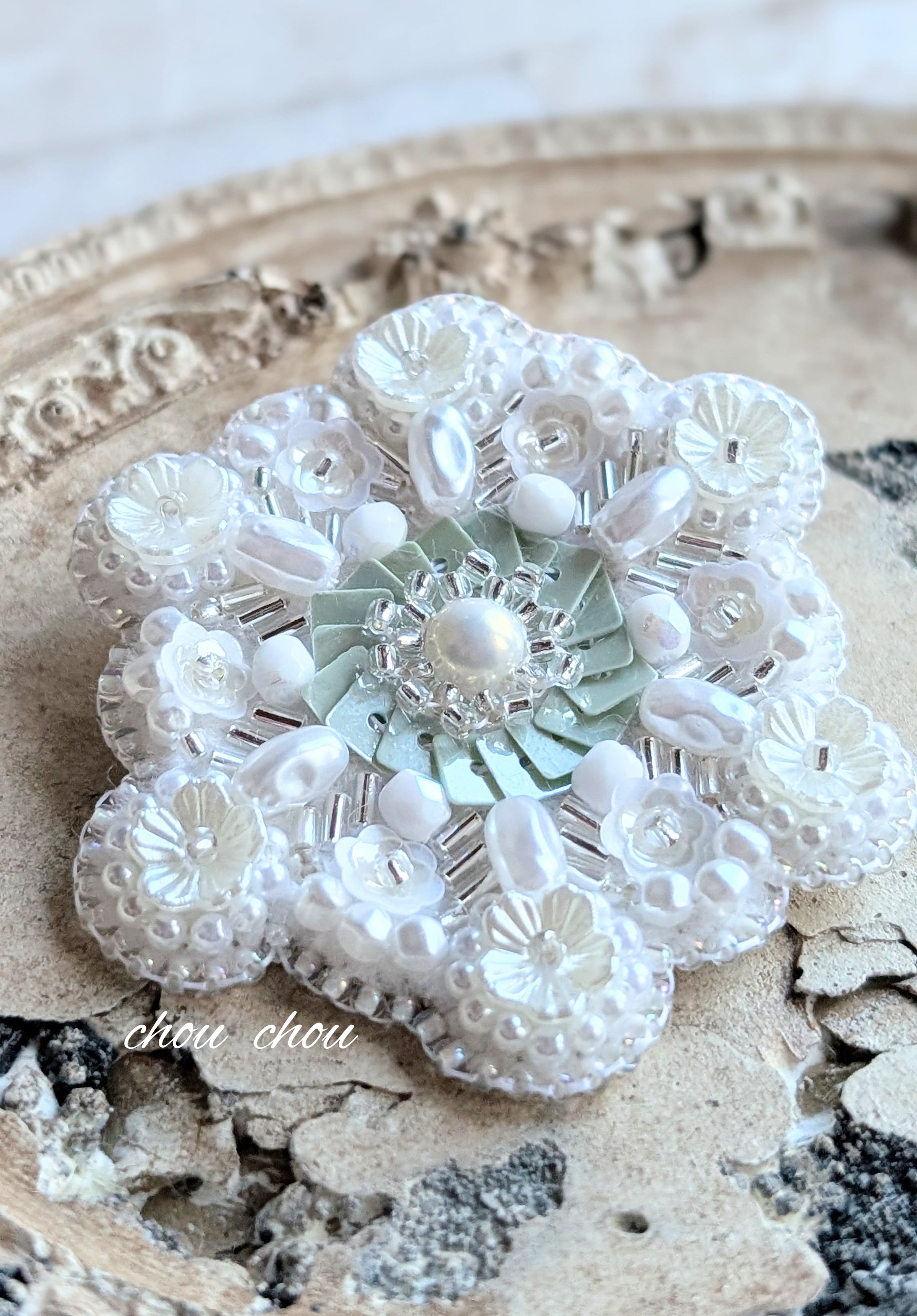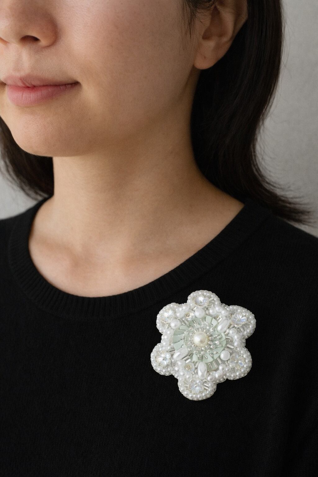 このブローチは、一つ一つ丁寧に作られており、緻密なデザインが特徴です。コートやニット、スカーフといった幅広いスタイルにフィットし、日常のおしゃれにも取り入れて楽しむことができます。雪が舞うような季節の雰囲気を演出し、どんなシーンでも華やかに彩ります。